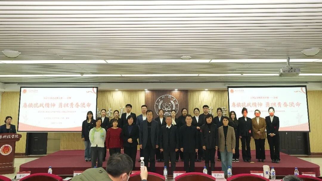 为纪念中国人民抗日战争暨世界反法西斯战争胜利80周年,赓续抗战精神,勇担青春使命,马克思主义学院于11月25日在行政楼411举办大学生讲思政课比赛。长春科技学院校长栾立明、副校长张代治、党委副书记宋学山、教务处处长宋卓、团委书记孙旭、马克思主义学院院长、副院长王路平、毕彩云教授出席决赛并担任评委。马克思主义学院全体教师及各分院学生代表参加,张丽丽老师主持会议。本次大学生讲思政课比赛经过初赛、复赛,最终来自不同学院的8名优秀选手进入决赛,...
