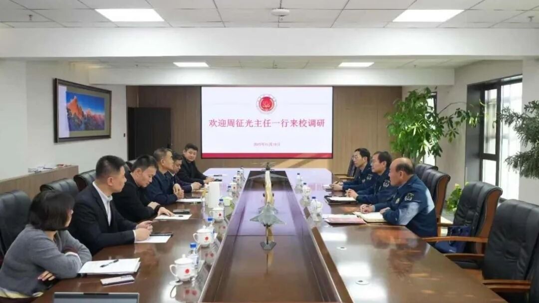 11月19日上午,空军航空大学航空基础学院政工部主任周征光、参谋部副参谋长甘世春、政工部组织纪检科科长文建毅一行3人来学校调研。董事长张电达、党委书记崔高嵩、党委副书记宋学山及相关职能部门负责人参与调研活动。董事长张电达对周征光主任一行的到来表示了欢迎。周征光主任系统介绍了空军航空大学航空基础学院的发展历史、使命任务及在整个空军作战体系中重要地位作用。调研组观看了集团和学校宣传片,参观了学校科学工程中心。...