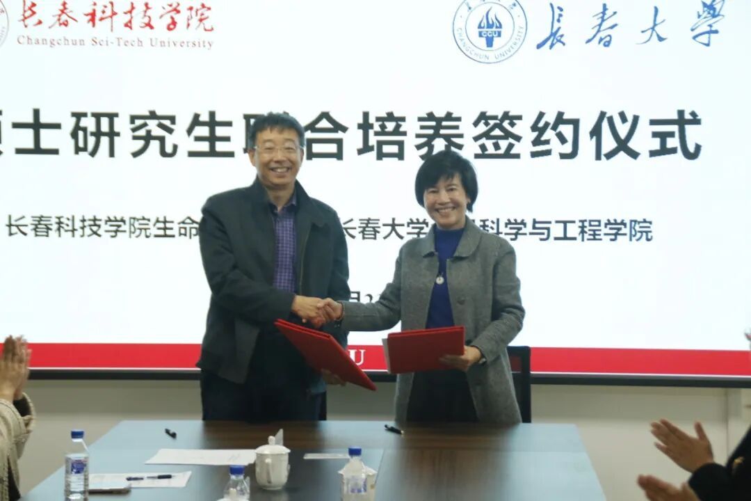 2025年10月23日下午,长春科技学院生命科学学院与长春大学食品科学与工程学院举行硕士研究生联合培养签约仪式。长春大学食品科学与工程学院党委书记周凤臣、院长赵珺、科研副院长吴琼、食品质量与安全系主任刘通;长春科技学院科研处处长兼学科建设办公室主任陈前、生命科学学院院长李国江、科研副院长唐玉娇、吉林省鹿产业工程研究中心主任陈巍、食品质量与安全专业主任孙永杰、赛创中心主任刘畅出席仪式。签约仪式由唐玉娇主持。长春科技学院科研处处长陈前代表学校致欢迎辞,...
