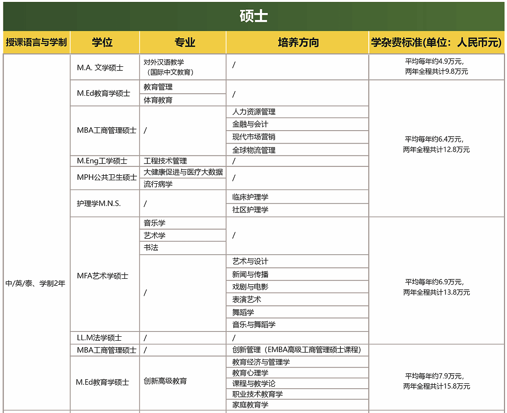 2.英语、泰语入学时无硬性要求,入学后会开设强化提升课程;