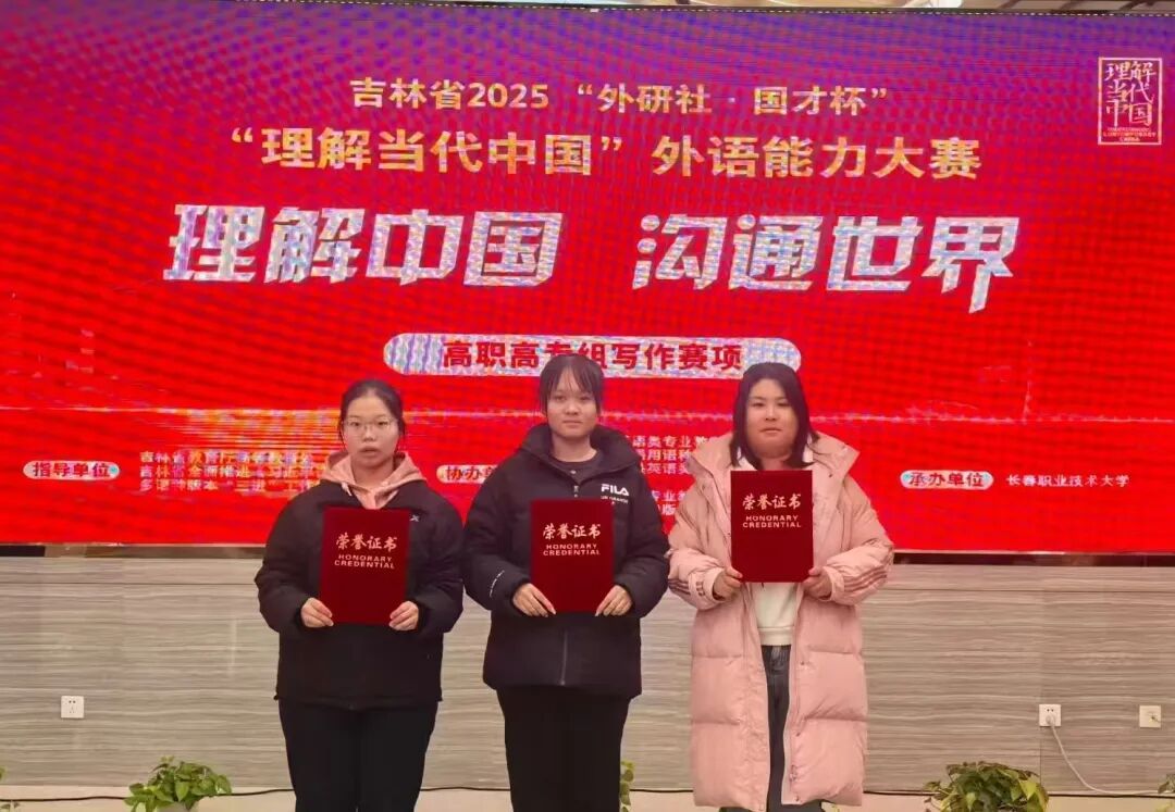 2025年10月25日–26日,2025“外研社•国才杯”“理解当代中国”外语能力大赛吉林省高职高专组赛事圆满落幕。学校学子凭借扎实的外语功底、出色的表达能力与稳定的赛场发挥,在写作和演讲两大赛项中捷报频传,斩获多项荣誉。