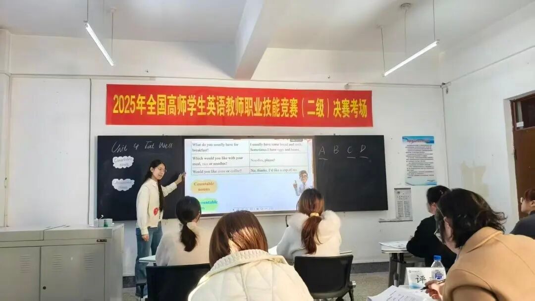 为深入贯彻相关文件精神,全面推进英语教师职业技能培养,由长春师范大学承办的全国高师学生英语教师职业技能竞赛吉林赛区决赛,于2025年11月22日在长春师范大学外语楼顺利举行。本次比赛汇聚了来自全省15所高校的250名选手同场竞技。