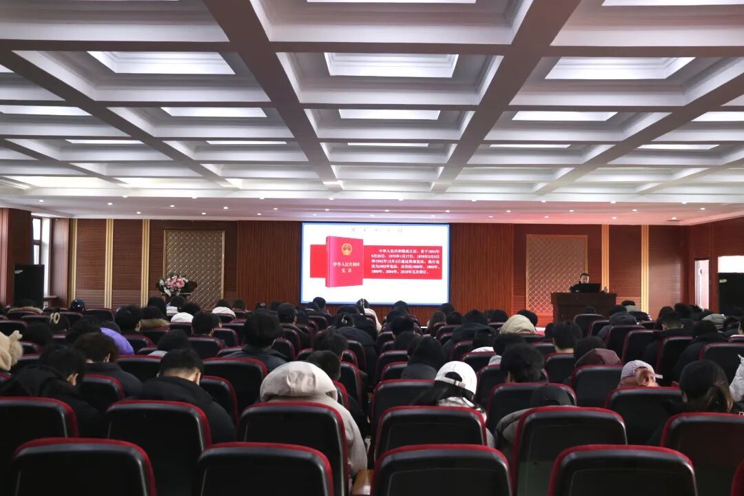 为了让同学们深刻理解宪法精神、增强法治观念,加强校园安全意识,提升自我保护能力,12月4日,在第十二个国家宪法日来临之际,智能制造学院在一教六楼报告厅开展了以“筑牢安全防线,点亮平安青春”为主题的宪法与校园安全宣讲分享会。出席本次活动的有智能制造学院团委书记赵雪老师及学工办全体老师。活动特邀长春市双阳区司法局双营司法所所长、双阳区普法讲师团讲师付永强担任主讲。分享会由智诵主持阁成员李梦豪主持。