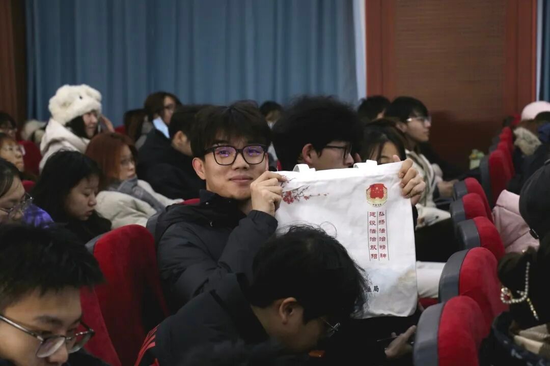 在互动交流环节,同学们围绕网络安全、个人信息保护、电信诈骗防范等问题踊跃提问,双阳区司法局还为答题同学准备了精美的小礼品。付永强老师结合PPT中列举的“刷单返利”“冒充客服”“杀猪盘”等典型诈骗案例,以及在校生参与“两卡”出租、帮助引流等涉案情形,进行了深入剖析与警示。他强调,“安全是一种能力,更是一种习惯”。同时他也希望同学们能将法治精神融入日常言行,做遵纪守法、明辨是非的积极践行者;更期待大家常怀安全意识,互促共进,携手筑牢校园平安的青春防线。