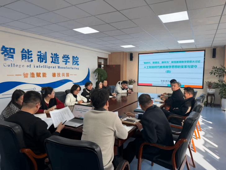智能制造学院人工智能通识课程组于2025年12月9日召开“人工智能时代教育教学思想的变革与坚守”专题研讨会。本次会议旨在深入探讨人工智能技术普及背景下,如何重构教育教学的核心价值与实践路径。会议聚焦“核心思想变革”、“实践路径转型”以及“育人本质坚守”三大维度,试图回答“培养什么人、怎样培养人”的时代命题。参加本次会议的有智能制造学院副院长隋庆茹、刘晓彦,网络工程专业主任吕光雷,人工智能通识课课程组成员,会议由计算机基础教研部副主任、课程组负责人刘智杨主持。