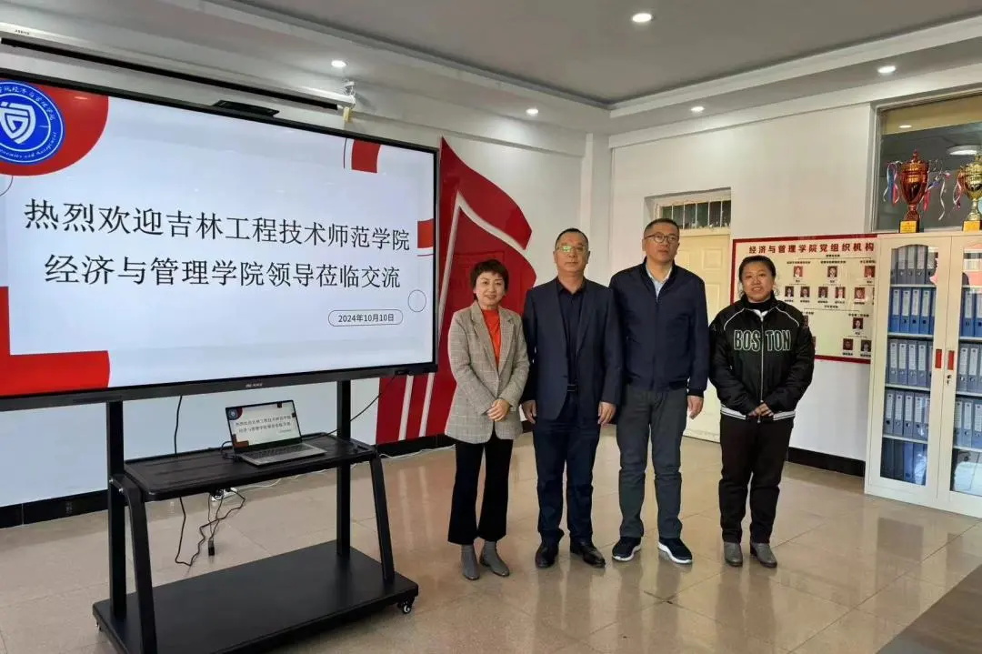 2024年10月10日上午,2410会议室举办了一场关于人才培养和研究生招生的交流会议。与会嘉宾包括吉林工程技术师范学院经济与管理学院的副院长王海文教授、刘春明教授,以及长春科技学院经济与管理学院的副院长成颖教授和工商管理专业主任张微副教授。