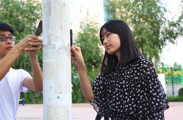 活动开始前,绿环学生干部事先准备了铲刀、垃圾桶等工具。在绿环主席庄满的带领下,同学们来到分担区,他们仔细耐心地清除了各种的小广告。在活动过程中,他们不怕累,不怕脏,体现出责任意识和奉献精神。