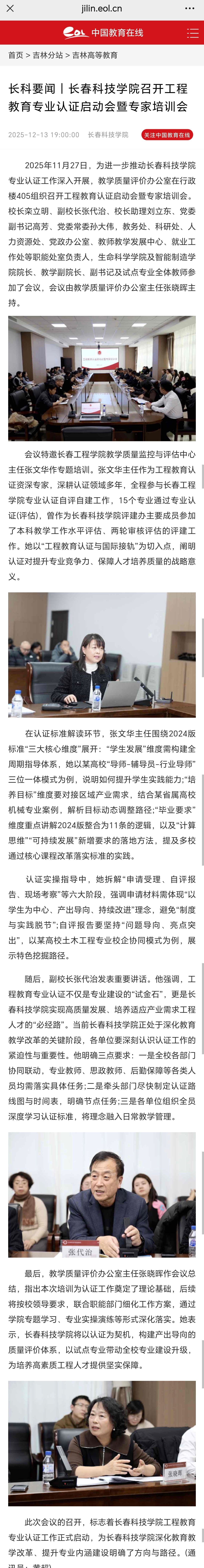 长春科技学院召开工程教育专业认证启动会暨专家培训会