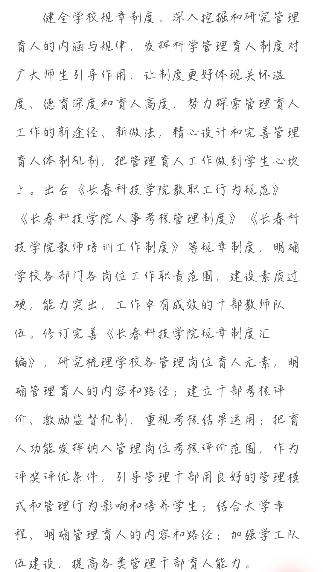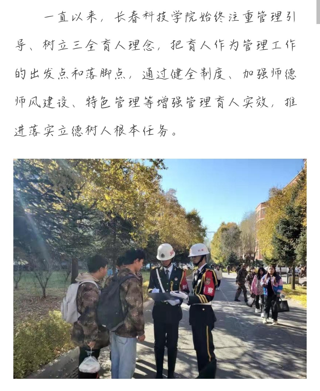 强化管理“磁力场”,凝聚育人合力。长春科技学院始终注重管理引导、树立三全育人理念,把育人作为管理工作的出发点和落脚点。