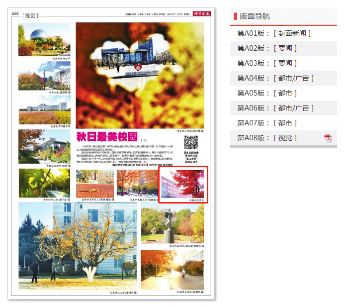 谁说吉林的深秋只有寒意?落日余晖下的操场、色彩斑斓的树木、落叶点缀的草坪,供暖后温暖的教室,飘着菜香味儿的食堂……深秋的温暖与美丽藏匿在每一处角落。