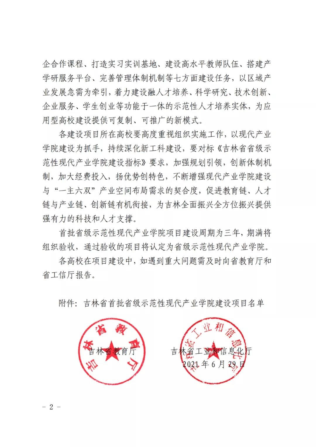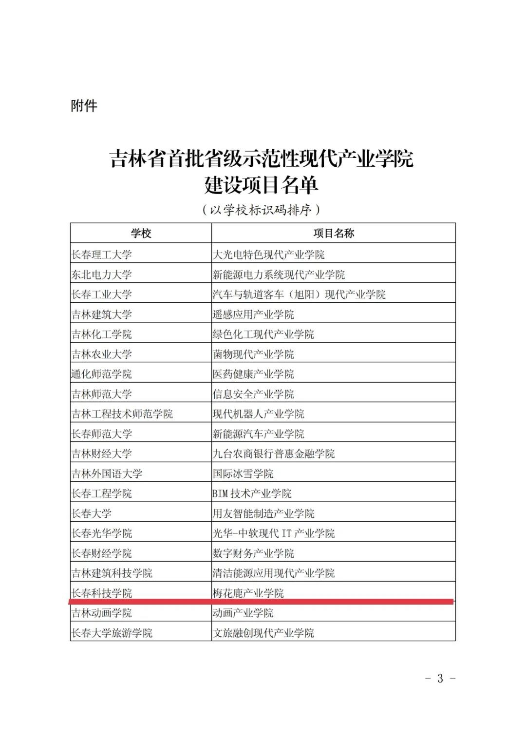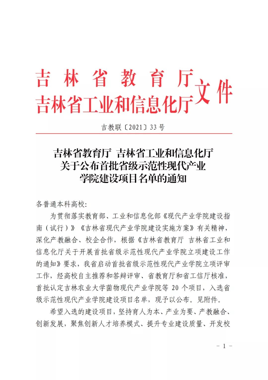 近日,吉林省教育厅、吉林省工业和信息化厅联合下发了《关于公布首批省级示范性现代产业学院建设项目名单的通知》(吉教联〔2021〕33号),长春科技学院申报的《梅花鹿产业学院》被首批认定为省级示范性现代产业学院建设项目。