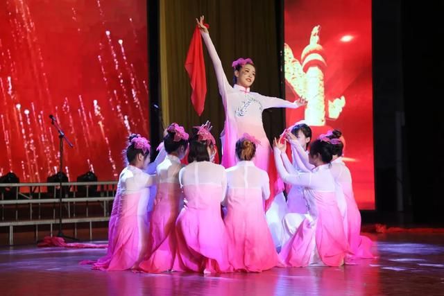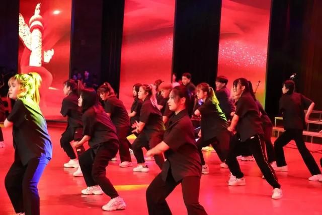 比赛最后,学校党政领导班子全体成员带领机关党总支合唱团带来合唱表演《我们走在大路上》《没有共产党就没有新中国》,场下观众全体起立,共同吟唱,台上台下一片欢腾,将整场活动推向了高潮。