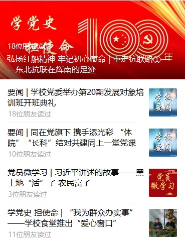 开展“五项”活动,确保党史学习教育“火”起来。通过举办优秀党员师生代表“创先争优”表彰活动及先进事迹报告会、开展主题作品征集、弘扬主旋律、网上主题宣传教育、氛围营造等确保党史学习教育“火”在校园。着眼建党百年、红色印记、大美中国、脱贫攻坚等,以“一篇爱党故事”“一句奋斗宣言”“一首红色赞歌”“以高速公路带来的变化”为主题在全校开展作品征集。以“重温红色经典,共抒爱国情怀”为主题,举办庆建党100周年师生文艺汇演。通过大学生暑期“三下乡”“大学生筑梦之旅”“重走抗联路”等活动激发广大师生勇担民族复兴大任,不辱时代使命,争做新时代的奋斗者。发挥网站、微信公众号、微博、抖音等融媒体矩阵作用,设立党史学习、庆祝建党100周年专栏,刊发网评文章,制作音视频、长图、H5等,加强百年党史宣传。利用各党总支和部门新媒体平台,讲述爱党故事,进行“@大接龙”矩阵化传播,网上重走“抗联路”等讴歌中国共产党百年辉煌。制作对党的祝福语、奋斗宣言、朗诵爱国诗歌等欢庆中国共产党成立100岁周年。围绕“弘扬红船精神 牢记初心使命”主题,通过在LED屏、建筑围挡、展板、灯杆道旗和新媒体宣传平台发布宣传标语、图片、视频等营造庆祝建党100周年浓厚氛围。