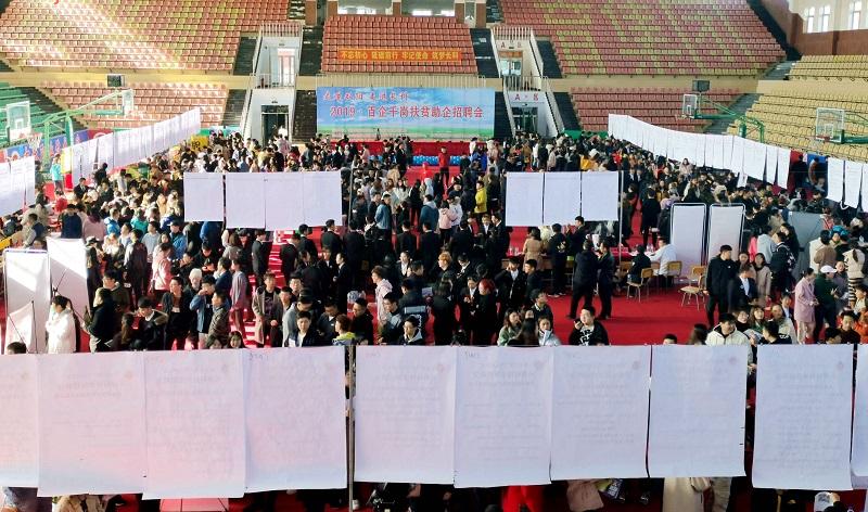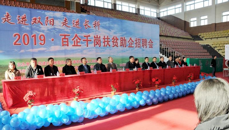 11月3日,由民建长春市委员会、双阳区人民政府共同主办的“2019百企千岗扶贫助企招聘会”在长春科技学院体育馆举行。民建长春市委员会主委、副市长贾晓东,双阳区人民政府副区长汤大鹏,长春科技学院党委书记陈延民出席了招聘会启动仪式并讲了话。中共长春市委统战部副巡视员庹丽琴出席了招聘会启动仪式。中共双阳区委常委、统战部长王醒时主持了招聘会启动仪式。