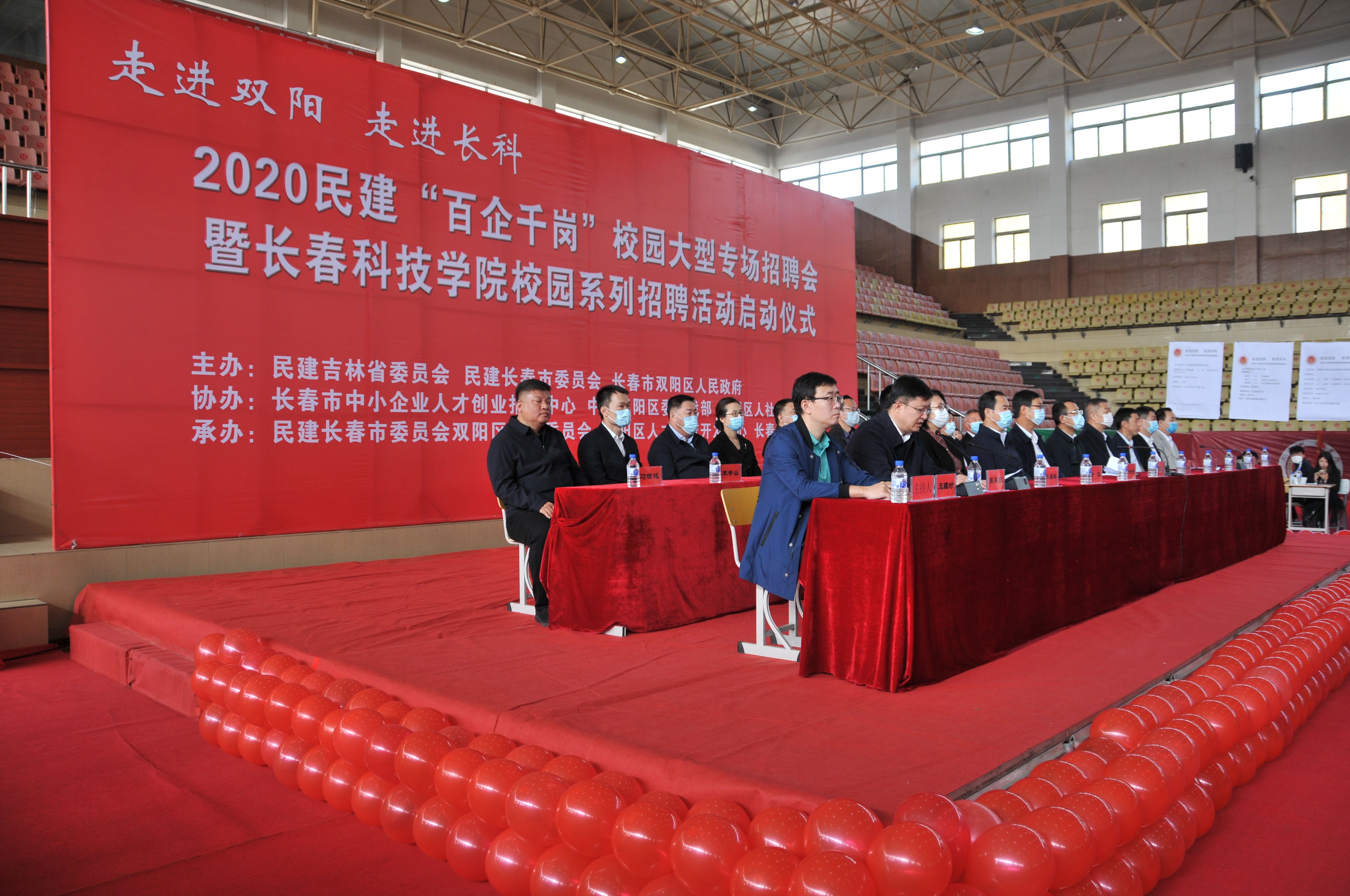 为贯彻落实中共十九大精神和习近平总书记视察吉林时重要讲话重要指示精神,切实助力“六稳”“六保”,9月26日,民建吉林省委、民建长春市委、双阳区人民政府共同主办的2020年民建“百企千岗”校园大型专场招聘会在长春市双阳区长春科技学院体育馆举行。民建吉林省委主委、民建长春市委主委、长春市副市长贾晓东出席活动并讲话。