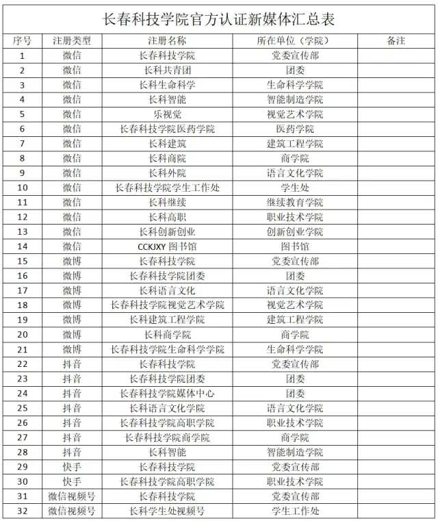 为深入贯彻习近平总书记关于宣传思想工作的重要论述精神,全面落实意识形态工作责任制,进一步加强和规范长春科技学院校园新媒体账号的建设和管理,持续壮大校园主流思想舆论,根据上级要求和我校实际,现就相关工作通知如下: