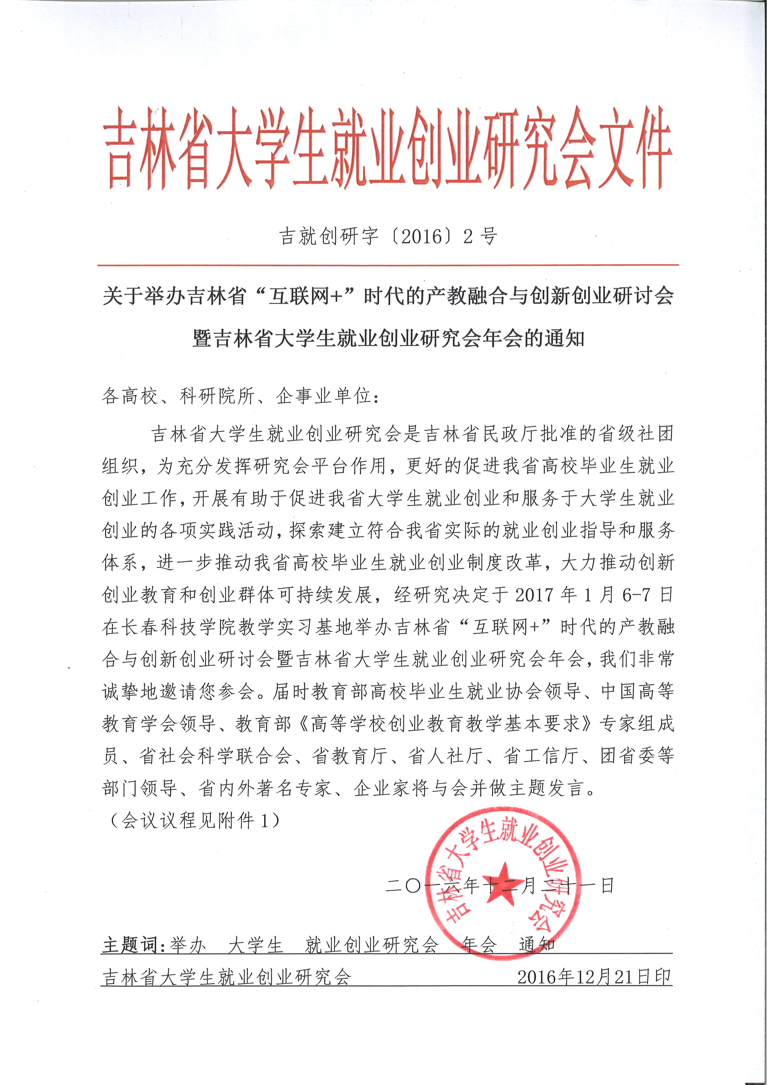 吉林省大学生就业创业研究会年会附件