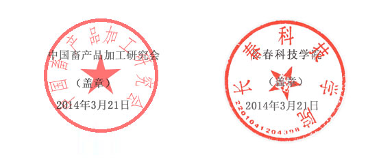 3、会议论文集: 大会论文经编辑部审核录用的将发表到《肉类研究》2014 年第6、7 两期,请作者直接投稿编辑部,版面费500 元/篇(自理)。大会评选优秀论文,颁发证书。