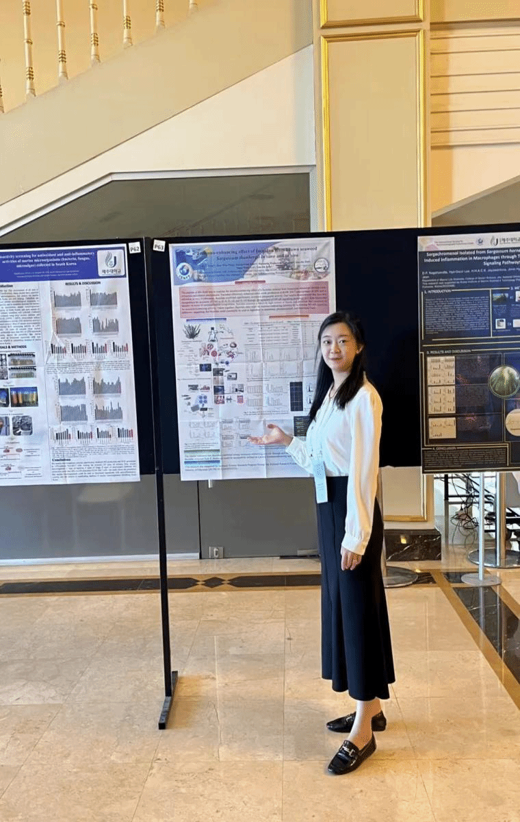 目前在韩国济州国立大学担任博士后研究员。撰写并发表了15篇SCI,以及中国学术期刊文章7篇,并拥有2项中国实用新型专利成果。主要研究方向为从海洋生物中分离提取纯化生物活性物质,优化提取和分析方法,运用细胞、斑马鱼等生物模型,结合western blot、PCR、FT-IR、免疫荧光实验等多种实验技术,对各种海洋生物天然功能成分的抗氧化、抗炎、药妆、抗肌肉萎缩等多种生理活性进行评价
