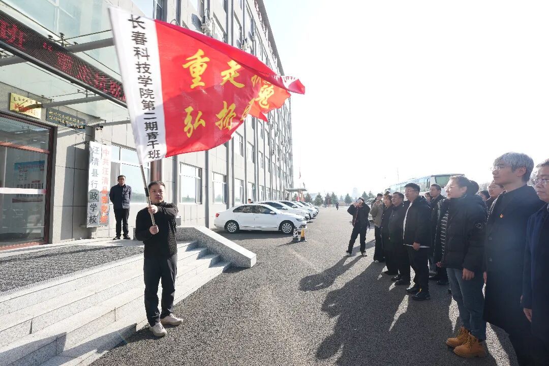 在汪清县委党校门前,长春科技学院第二期青干班举行了隆重的“重走抗联路”出发仪式。出发仪式在集体奏唱国歌中拉开序幕,随后汪清县委党校副校长王振京为培训班授旗。