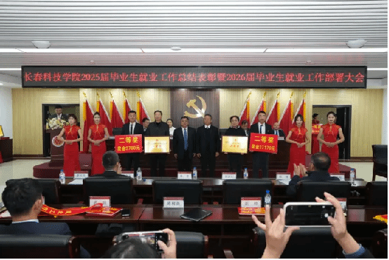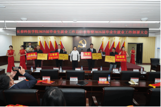 为树立典范,激励先进,孙大伟处长宣读了《长春科技学院2025年度就业工作表彰奖励的决定》。校长栾立明、党委书记崔高嵩等学校领导为受表彰奖励的就业优秀个人代表、“达标单位”、“先进集体”及“突出贡献单位”进行颁奖。热烈的掌声不仅是对过去一年辛勤付出的肯定,更是对再接再厉、再创佳绩的殷切期望。