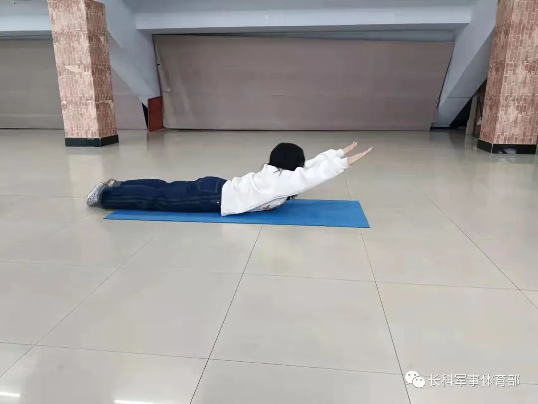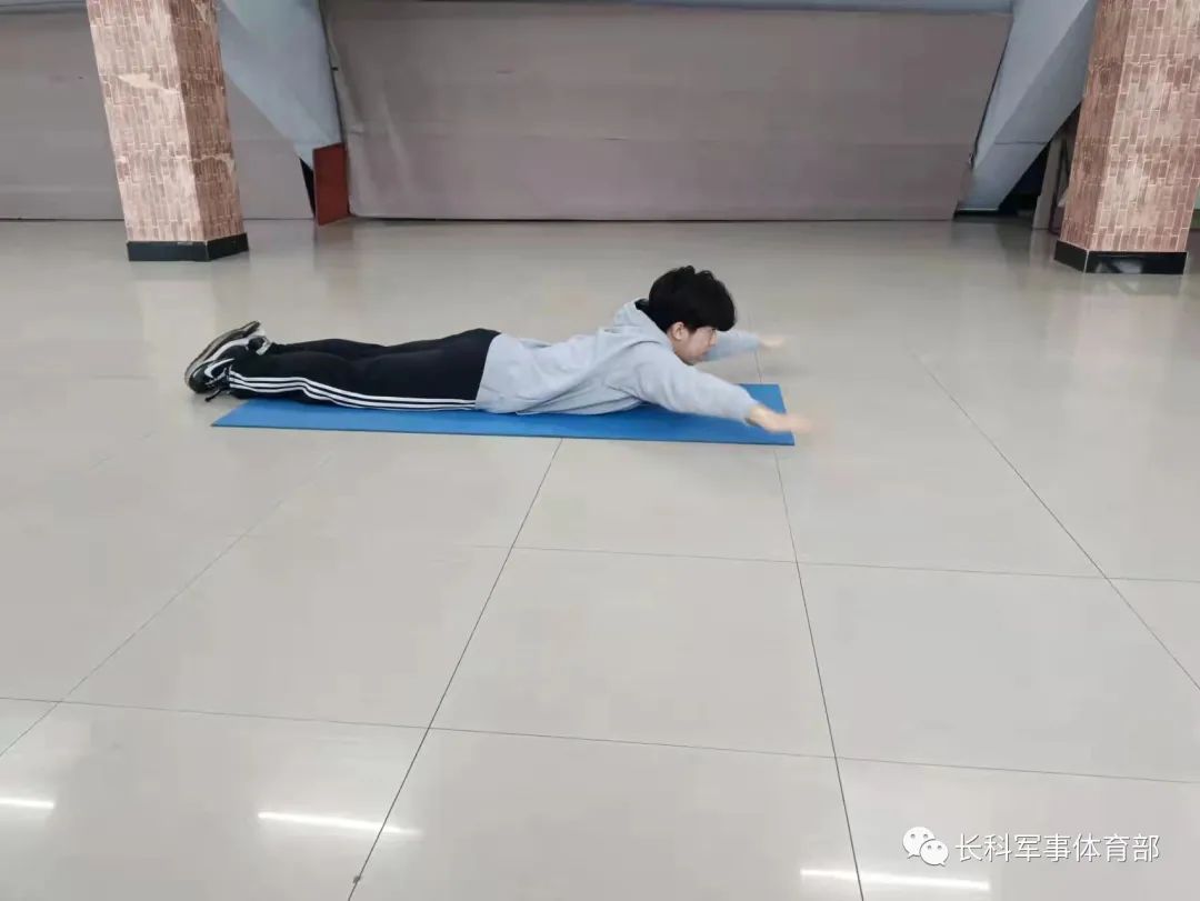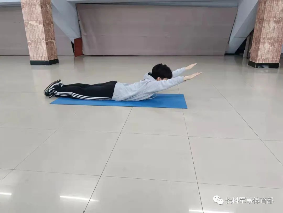 俯卧背起画圆:俯卧于瑜伽垫上,双腿并起,双臂伸直自然打开,间距略宽于肩宽,竖脊肌发力使上半身尽力抬起,并在最高点停顿,然后双臂向外画圆3周,然后再落下回到起始姿势。注意整个过程应该尽力保持下半身不动,控制住双脚不要离开地面。