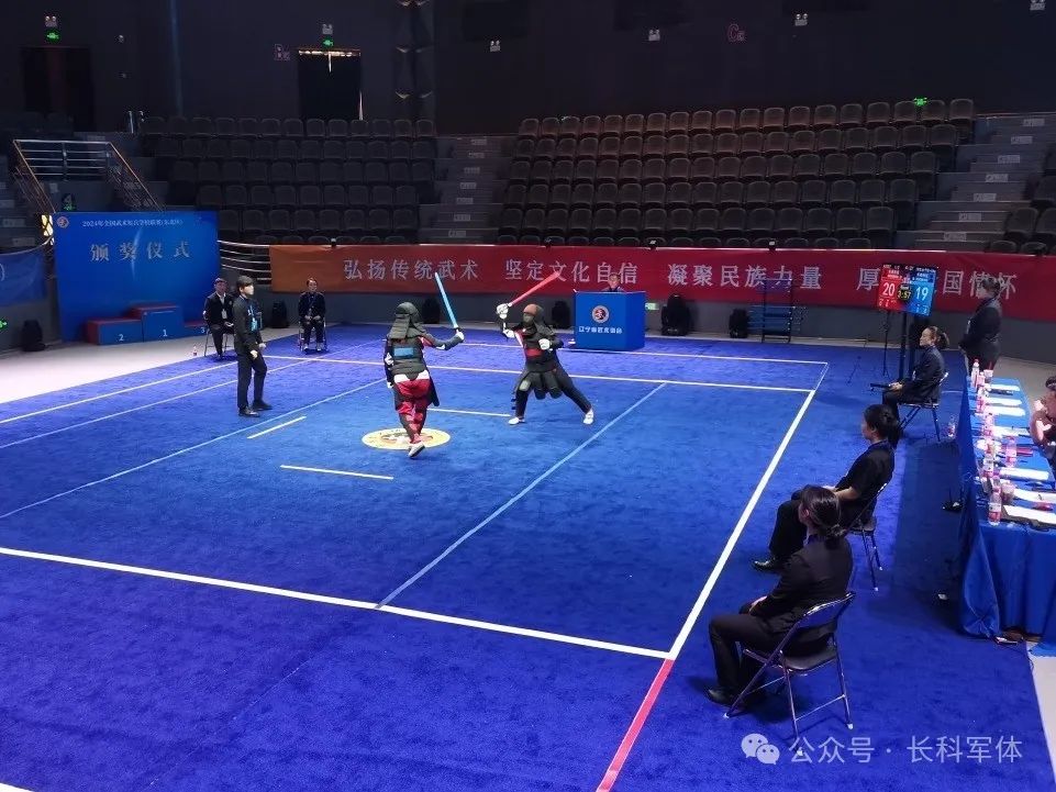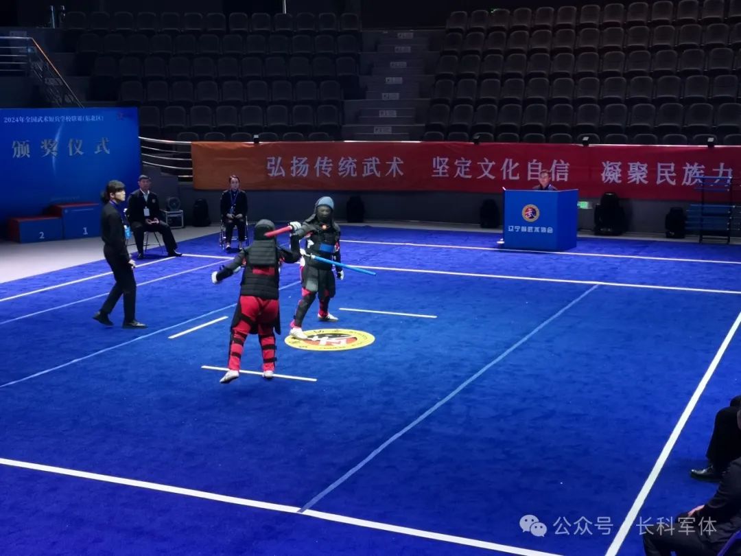 我校参赛选手在军事体育部教练员的科学指导下,刻苦训练,他们在汗水中感受武术的力量,在专注中品味武术的韵味。我校参赛选手身着专业的武术短兵服装,英姿飒爽,精神抖擞。在赛场上,他们动作刚劲有力,攻防转换,招式娴熟,一招一式尽显武术魅力。