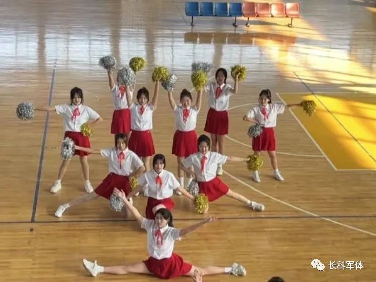 赛前,拉拉队成员们用整齐划一的舞蹈为女排队员加油助威。