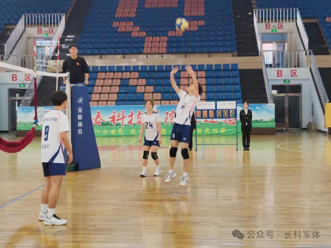 随着裁判一声哨响,赛场立刻陷入一片紧张而激烈的氛围中。双方队员们充满斗志,积极迎战,努力展现自己的最佳水平,发球、起跳、拦球,扣球,比赛一波三折,赛场之外的观众更是高举标牌,为队员们呐喊助威。随着比赛的深入,紧张气氛愈发浓厚,职业技术学院凭借着一次精彩的扣球,赢得了这场激烈而紧张的比赛。