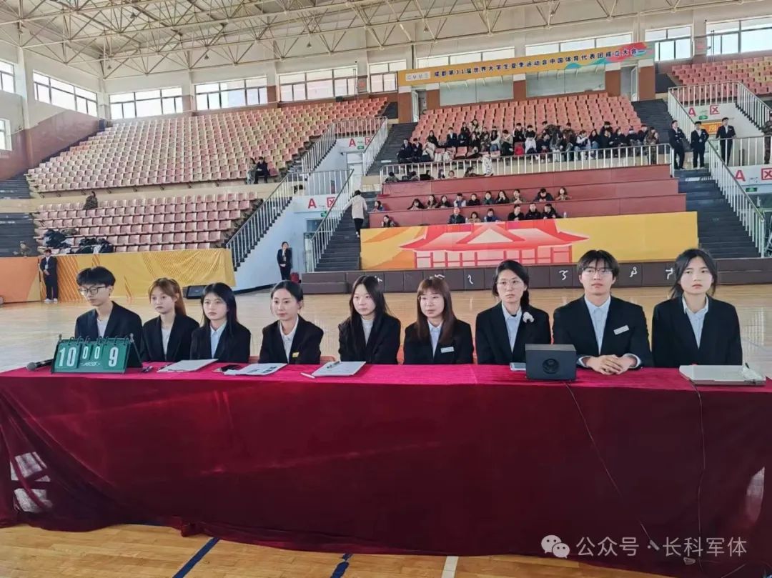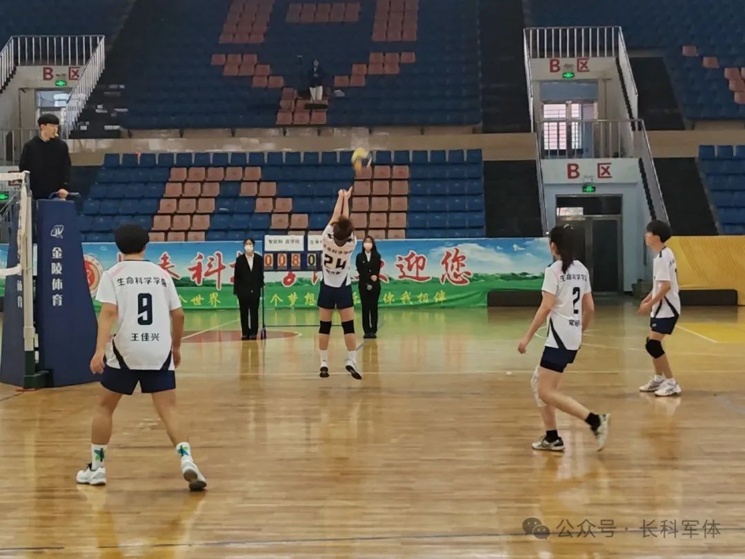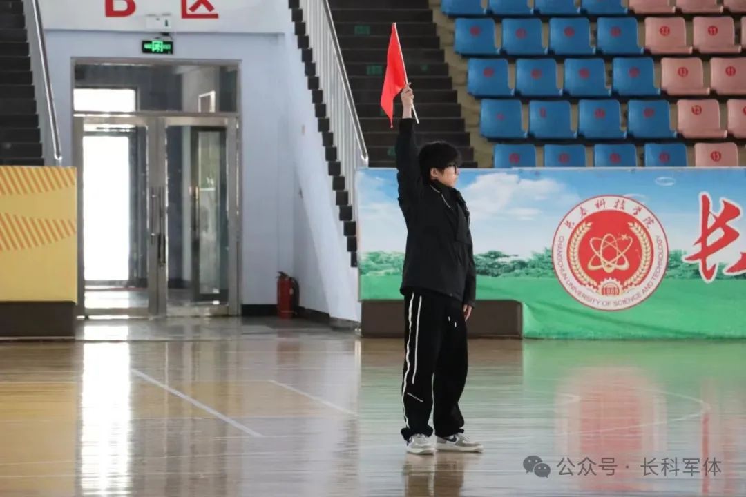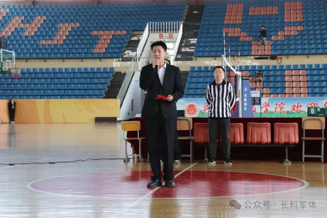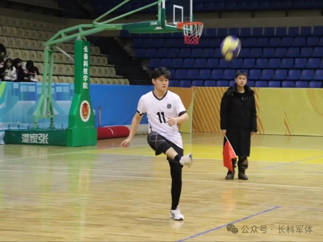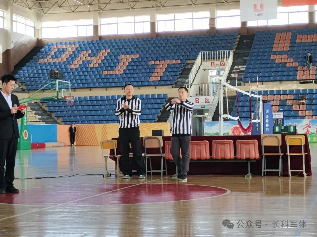 长春科技学院党委副书记宋学山,经济与管理学院院长王晓光,军事体育部主任孟繁威,纪委办公室主任付长春,学生处副处长吴彬,团委副书记孙旭等领导出席此次比赛。体育馆内,随着庄严而神圣的国歌响起,全体师生肃然起立,目光聚集在五星红旗上,整齐划一地合唱国歌。随后,主持人以激昂的语调宣布“东华杯”和球决赛正式开始。