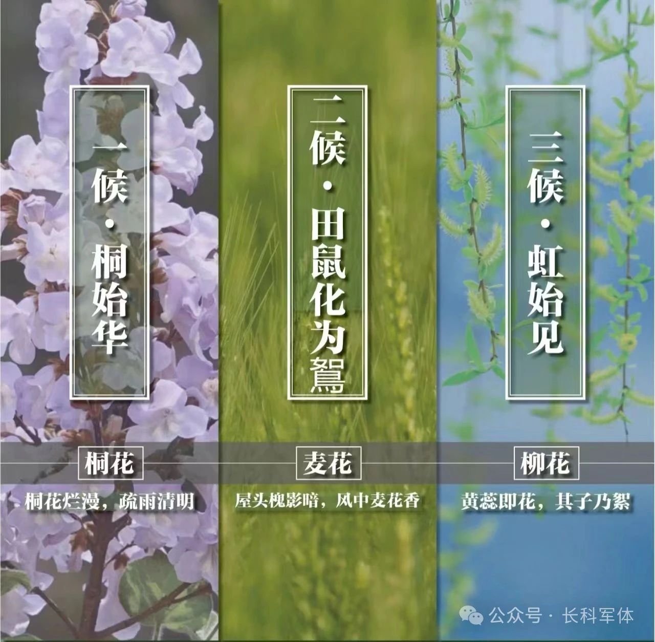 清明有三候:“一候桐始华;二候田鼠化为鹌;三候虹始见。”清明节气白桐树开花;喜阴的田鼠因感知到温度渐暖遁形不见;雨后初晴,云薄漏日,彩虹在天边出现。