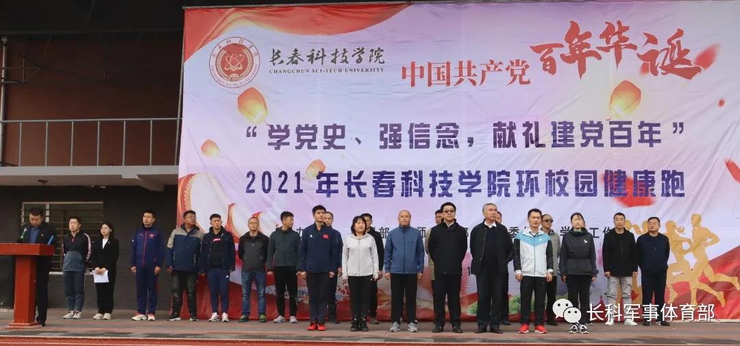 生命在于运动,健康永不停歇。2021年10月14日,“学党史,强信念,献礼建党百年”2021年长春科技学院环校园健康跑在我校体育场举办。长春科技学院校长秦磊、党委书记林佳彬、党委副书记宋学山、副校长刘晓辉、副校长高杰、校长助理刘立东、党委宣传部长、统战部长高芳出席了本次开幕式。各职能部门、各分院负责人、部分教师及运动员、裁判员参加了本次开幕式。军事体育部主任孟繁威主持开幕式。