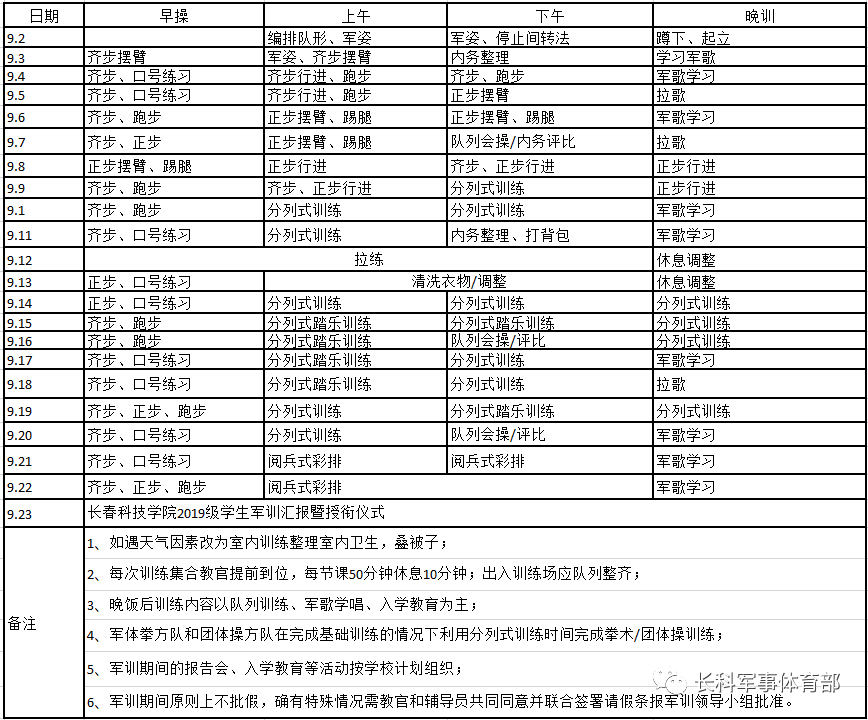 (二)军训期间实行半军事化管理,训练和日常生活要注意军容。