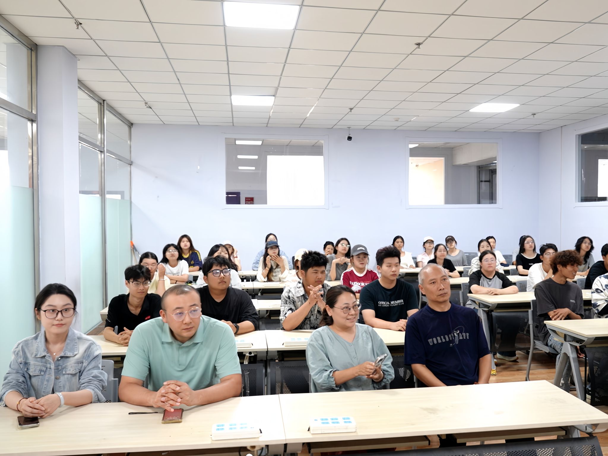 美术学专业介绍会由王宽主任主持,他首先回顾专业发展历程与学科排名成绩,介绍现有学科方向与优势;随后提及专业不仅师资雄厚,还常邀专家讲座、组织学生参观学术展览。接着,王宽主任围绕培养目标讲解以“组群式项目教学”为主线的课程体系,分享学生从建立自信到斩获省美展、国家级奖项的成长案例,以及学院为学生出版3部作品集;同时结合“视觉典范”文化讲述往届学生奋斗故事,简述就业与考研情况。最后,王宽主任鼓励新生把握大学时光,坚守艺术热爱,在绘画与创作中锤炼专业能力,为学院艺术氛围注入新活力,努力成长为兼具学术素养与实践能力的美术人才。