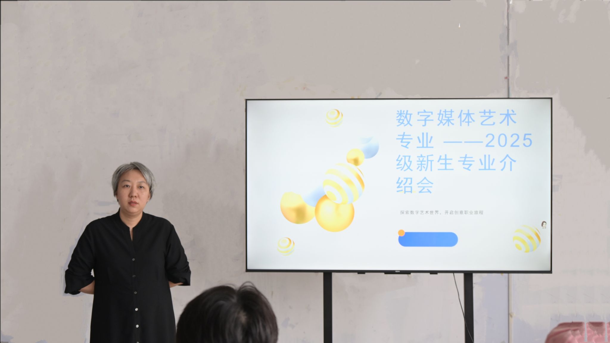 李胜男老师以“行业需求与专业培养”为切入点,在向新生致以欢迎与祝贺后,围绕专业概述、课程体系设置、学期教学安排及学时学分构成展开系统讲解。为帮助新生建立专业认知,李胜男老师通过展示往届学生的动画设计、交互作品等实践案例,清晰呈现了该领域从业者需具备的技术能力与创意思维。会议尾声,她强调“多提问、多思考、多实践”的学习准则,鼓励新生主动参与项目实践,积累行业经验。