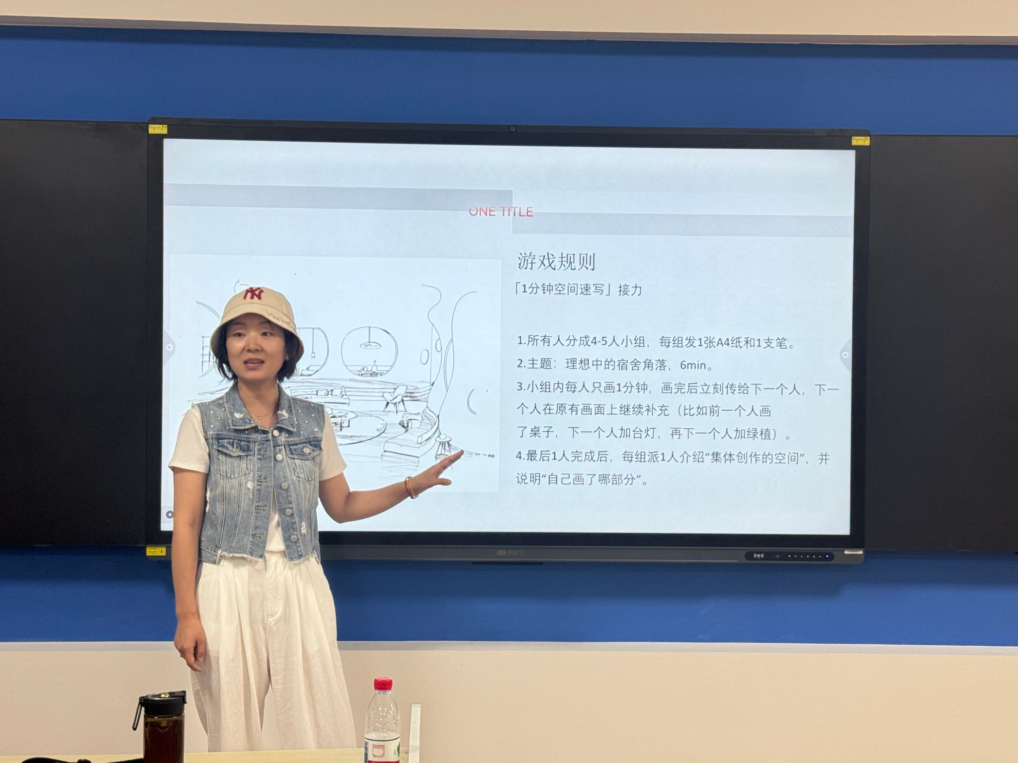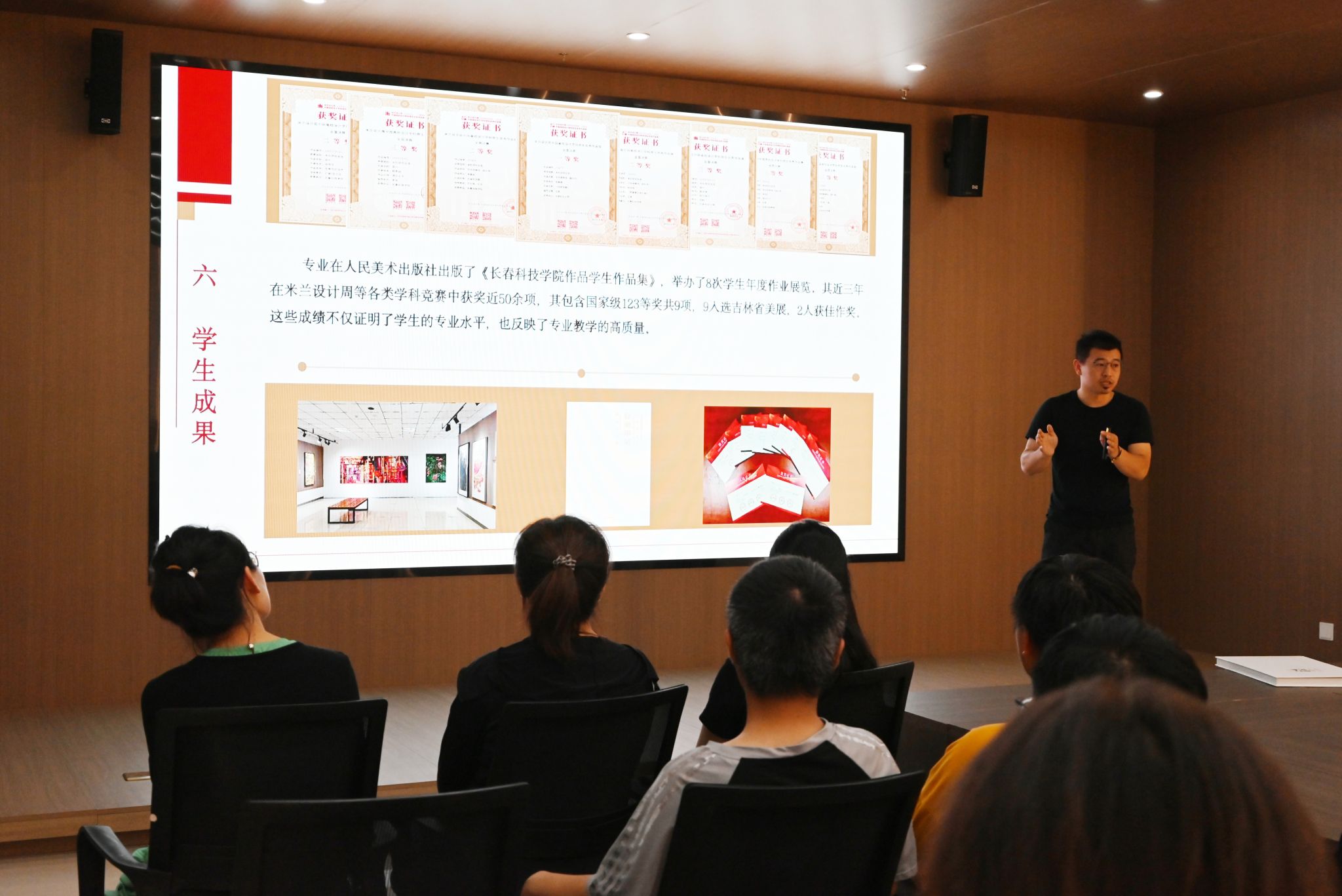 环境设计专业介绍会由刘洋主任主持,她先逐一介绍专业教师及各自在室内、景观设计等领域的研究方向,结合教师参与的商业空间改造、公园规划等项目案例,让新生直观了解师资团队的实操经验与教学优势。随后播放专业短视频,通过住宅软装搭配、校园景观升级等落地项目展示专业成果,同时明确行业对空间思维、审美把控等核心能力的要求,并简要说明专业“理论学习+软件实操+实地调研”的培养模式如何助力学生成长。最后,她分析建筑装饰、园林景观等领域的就业前景,拆解从初级设计师到项目负责人的职业成长路径,鼓励新生结合自身兴趣提前规划职业方向,为未来发展做好准备。