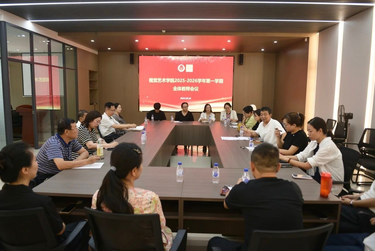 2025年8月26日下午,视觉艺术学院召开2025-2026学年第一学期全体教师会议,会议由李文成院长主持,全体教职工参会。