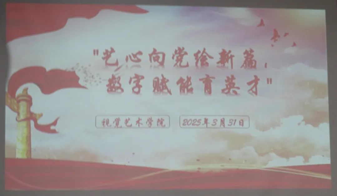为深入学习贯彻习近平新时代中国特色社会主义思想和党的二十大精神,推动艺术、党建与数字技术的深度融合,视觉艺术学院学生支部于2025年3月31日开展了“艺心向党绘新篇,数字赋能育英才”主题党课。此次会议由学生支部书记朱羽琪主持,全体学生党员参加。
