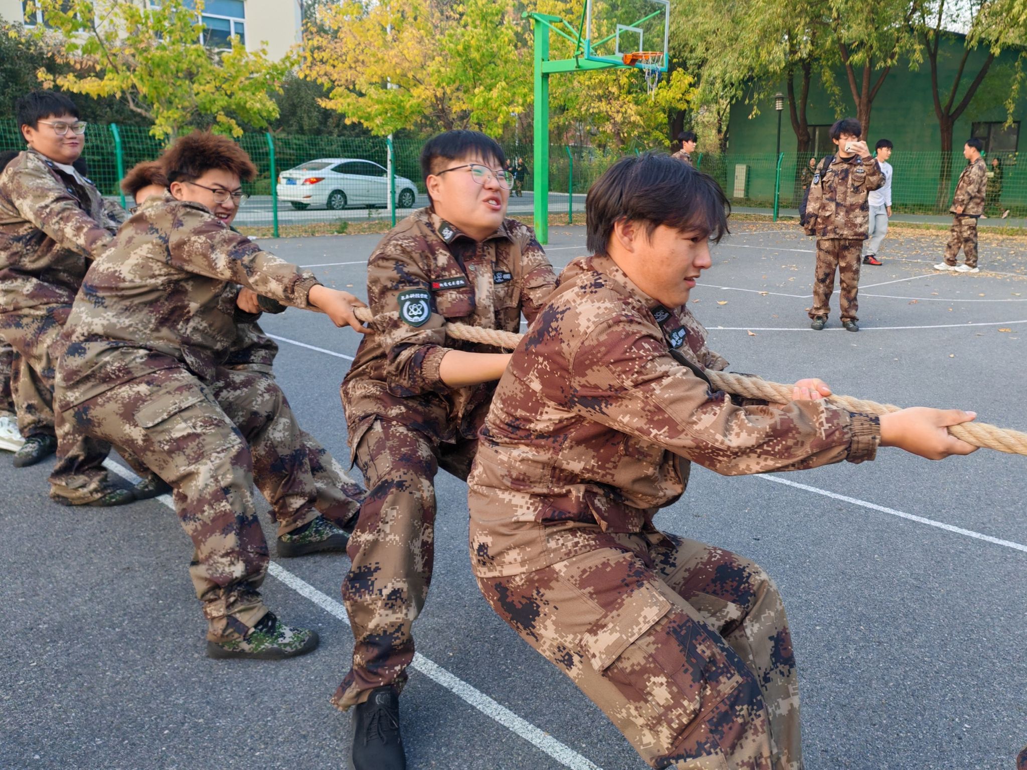 随着一声哨响,比赛正式开始。队员们迅速弯腰屈膝,身体后倾,双手牢牢抓住绳子,指尖因用力而泛白。场上加油声、呐喊声接连不断。同学们有节奏地喊着“一二,一,一二,一”,鼓励队友。在一场关键对决中,双方实力不相上下,红色标记在中线两侧来回移动,僵持不下。队员们即使手已经摩擦红了,也没有一人松劲。最终,我院队伍默契地配合猛然发力,将绳子拉过终点线,赢下比赛。