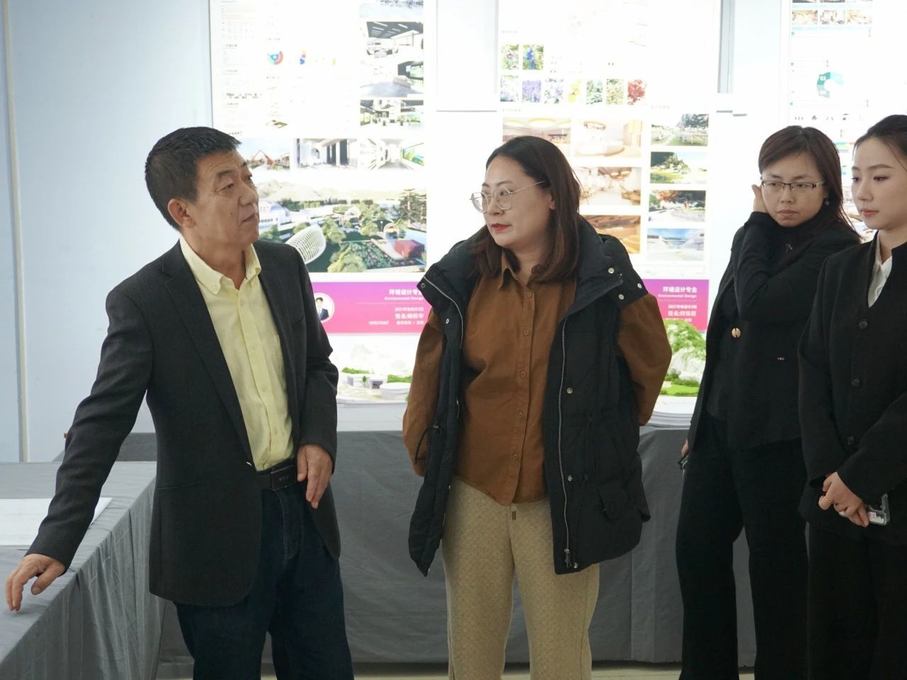 在答辩开始之前,李文成院长带领参加答辩的教师们观摩了2021级学生们的综合实训设计成果展示。在观摩过程中我院同学向老师们介绍了自己的设计理念与创作过程。每一件作品都蕴含着同学们对生活的悉心关注与深沉热爱,同时也彰显了他们在创作过程中力求完美、精益求精的态度。