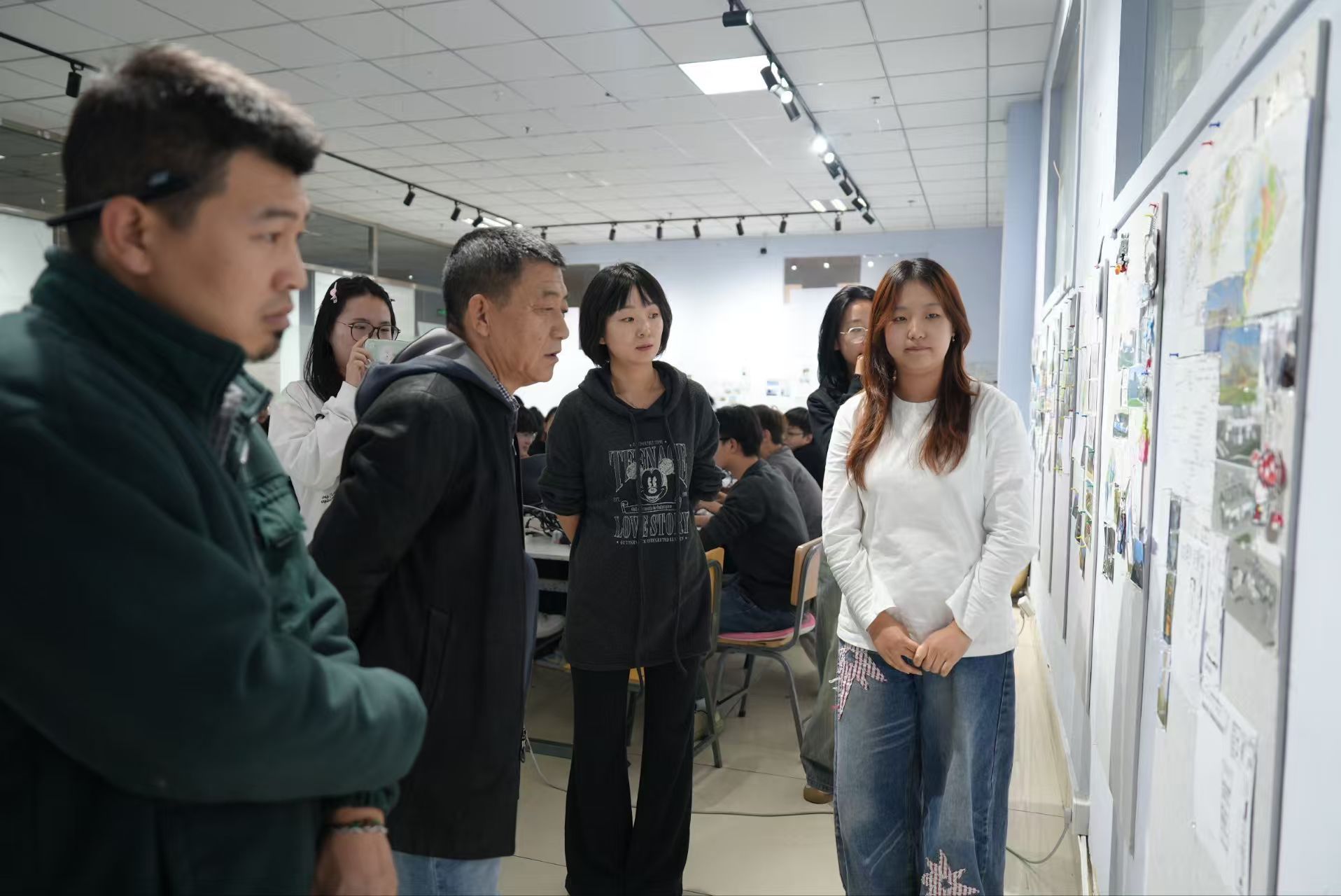 此次检查是我院践行过程性考核与全流程监控教学理念的一次集中体现,旨在将质量保障贯穿于人才培养的每一个环节。检查小组逐一走访各专业教室,在每一位学生身边驻足,仔细审阅作品草图、数字模型、设计稿、项目文档等阶段性成果,并与学生进行深入交流。检查小组不仅关注作品的最终视觉效果,更重点关注创意思维的生成过程、项目推进的逻辑性以及学生解决复杂问题的能力。这种沉浸式的检查,让学院领导与教师们对学生的真实创作状态有了最直观的把握。