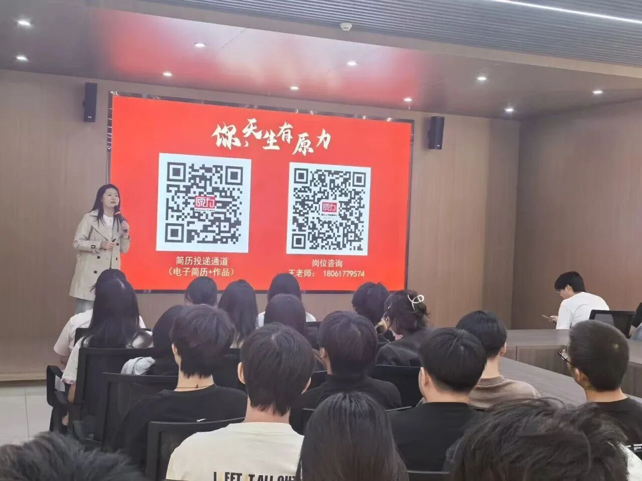 原力招聘流程包括:简历与作品集投递 → 面试预约 → 岗位测试 → 系统培训 → 正式上岗。企业代表特别提醒同学们,作品集是展现个人能力的重要材料,建议提前整理并突出个人特色。