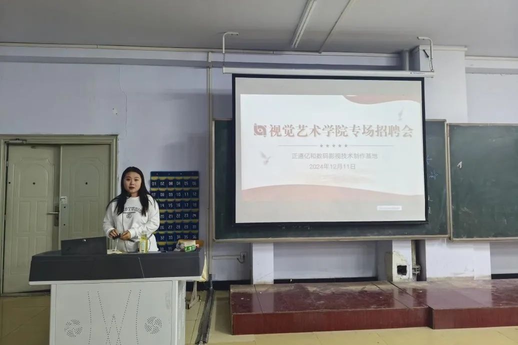 为进一步拓宽毕业生就业渠道,提供就业岗位,2024年12月11日,在学校就业工作处的推荐下,视觉艺术学院邀请北京亿和影视制作公司在第三教学楼一楼118教室举办2025届毕业生的专场招聘会。此次活动旨在为即将毕业的学生提供一个与企业面对面交流的平台,帮助他们更好地规划未来的职业道路。