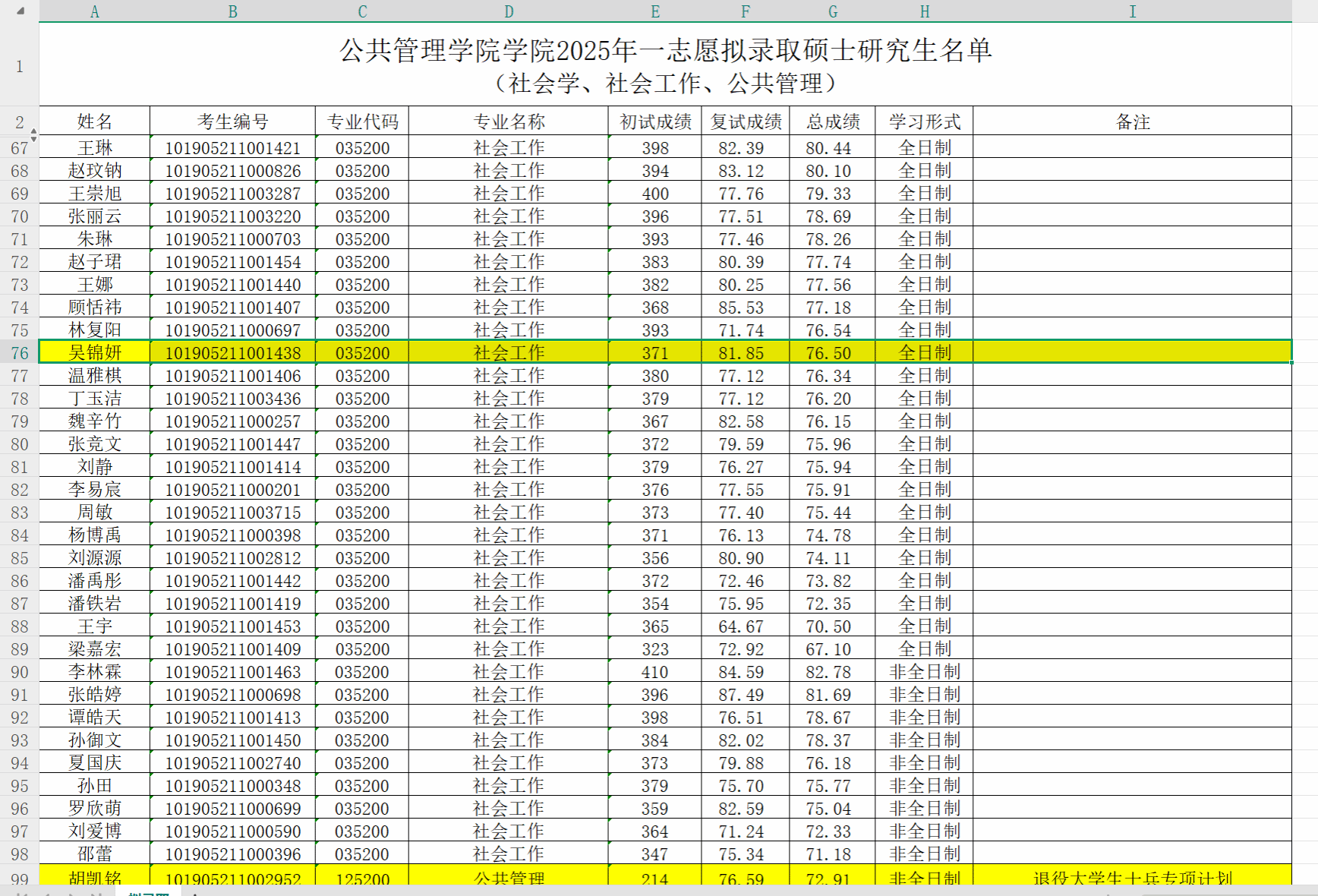 考研光荣榜
