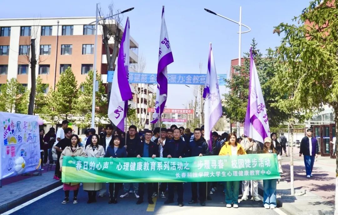 为进一步促进学生身心健康全面发展,引导学生在自然中感悟生命美好,培育积极乐观的心理品质 ,4月10日中午12点,长春科技学院心理健康教育中心举办了“春日的心生”心理健康教育系列活动之“步履寻春”校园徒步活动。本次活动共计近三百名学生参与,部分学院党总支副书记、学工办主任以及负责心理健康教育工作的辅导员老师也纷纷加入其中,与同学们一同感受春日的美好,学习心理知识,缓解学业压力。