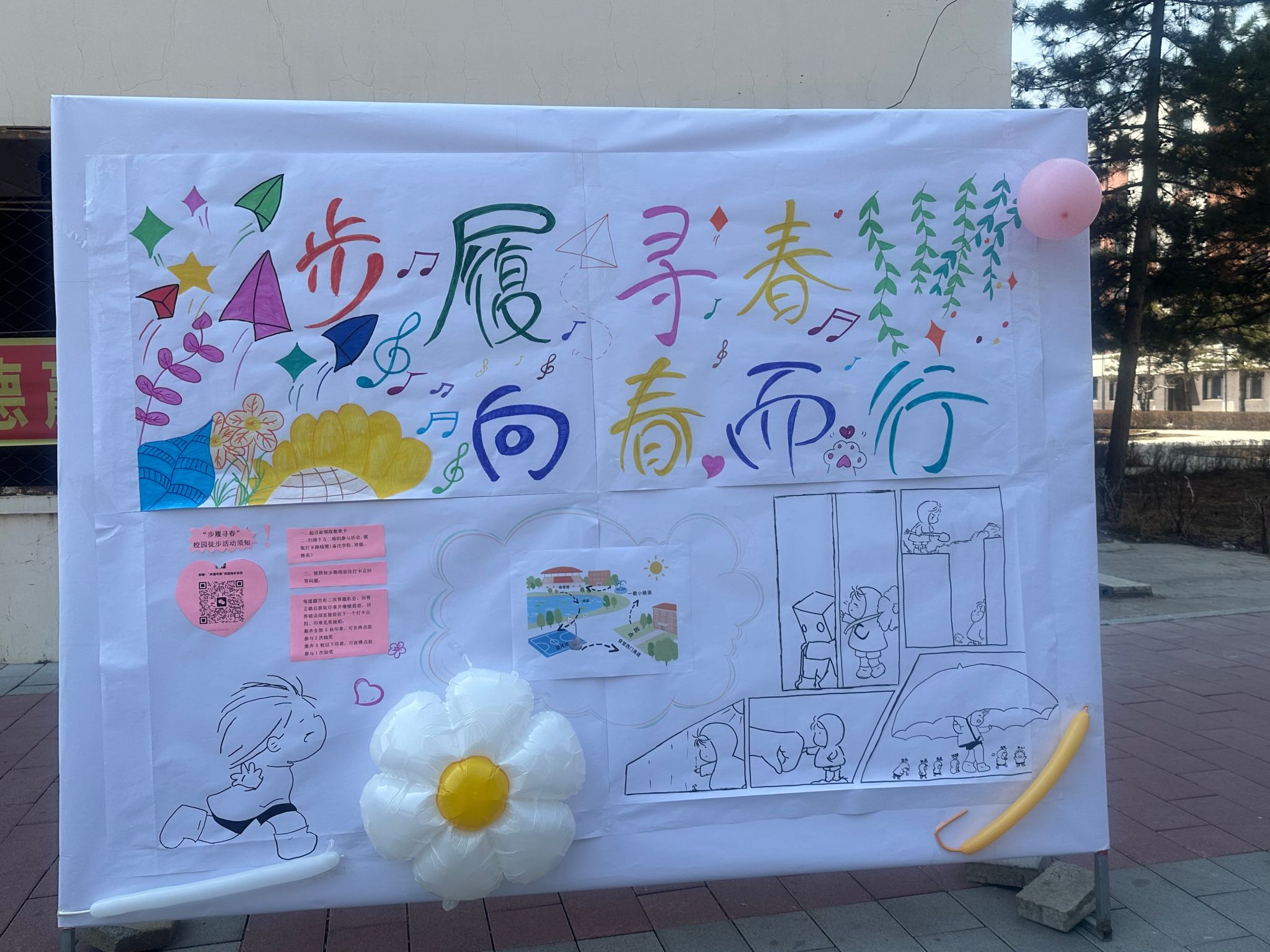 徒步过程中,师生们相互交流,分享着自己对春天的感悟和生活中的点滴趣事。老师们不仅为同学们解答了心理健康方面的疑问,还给予了他们很多鼓励和支持,让同学们感受到了学校的关怀与温暖。同学们也相互鼓励,携手前行,展现出了团结友爱的精神风貌。经过近两个小时的徒步,同学们陆续到达终点,完成了寻春活动。大家在终点处合影留念,记录下这一美好的时刻。