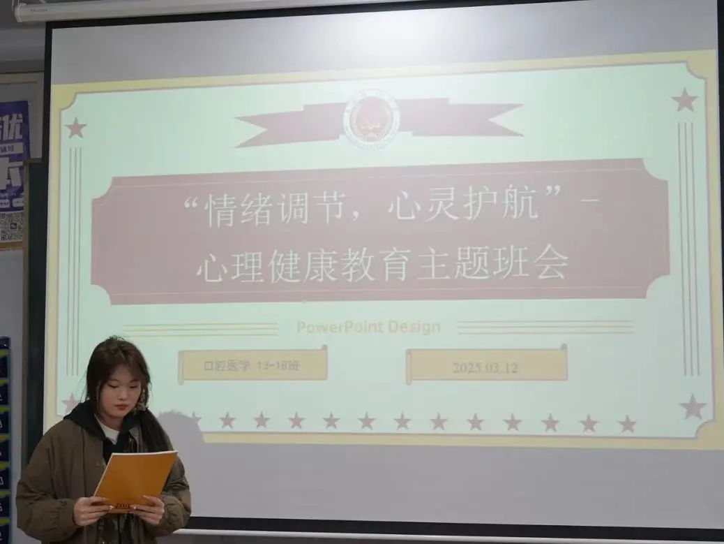 为增强学生的心理健康意识,帮助学生掌握情绪调节技巧,我院于2025年3月12日晚自习期间在各班级教室内举办了“情绪调节、心灵护航”为主题的心理健康教育班会。本次班会由学院精心策划,旨在为学生提供实用的心理调适方法,营造积极健康的校园氛围。