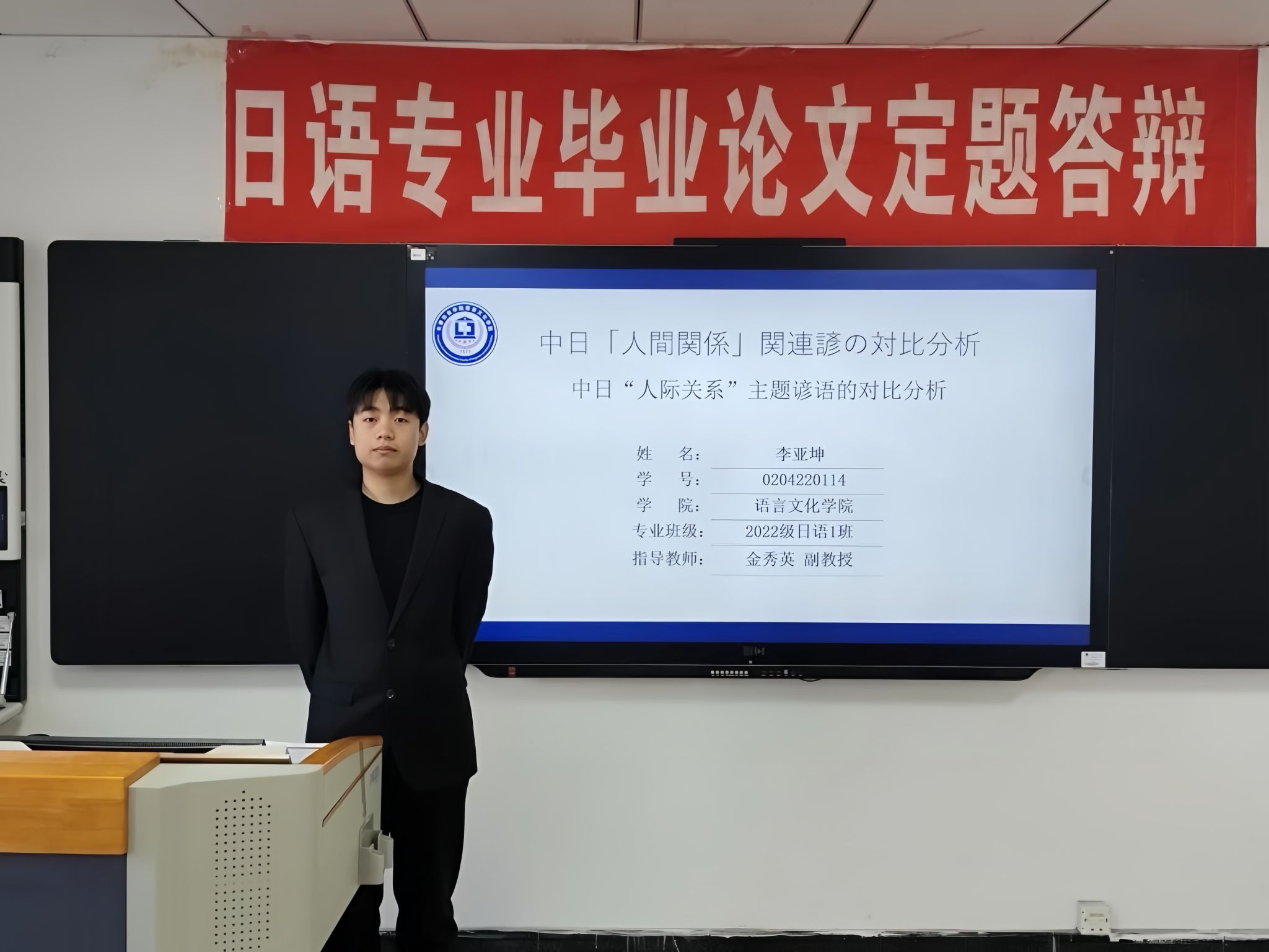 本次开题报告会由语言文化学院、新媒体学院统一部署,科研副院长、日语专业主任金秀英,日语专业教师康健、谭诚共同组成答辩评审小组,全程负责对学生开题报告的专业性指导与评审工作。