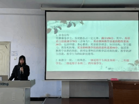 2023年10月19日8:00,语言文化学院·新媒体学院英语专业于第三教学楼202教室开展高师技能大赛经验交流会,语言文化学院新媒体学院公共外语教研部主任葛南,英语专业教师张晶、丁晓明、安圆圆、姜福仁以及2021级英语专业全体学生参加。