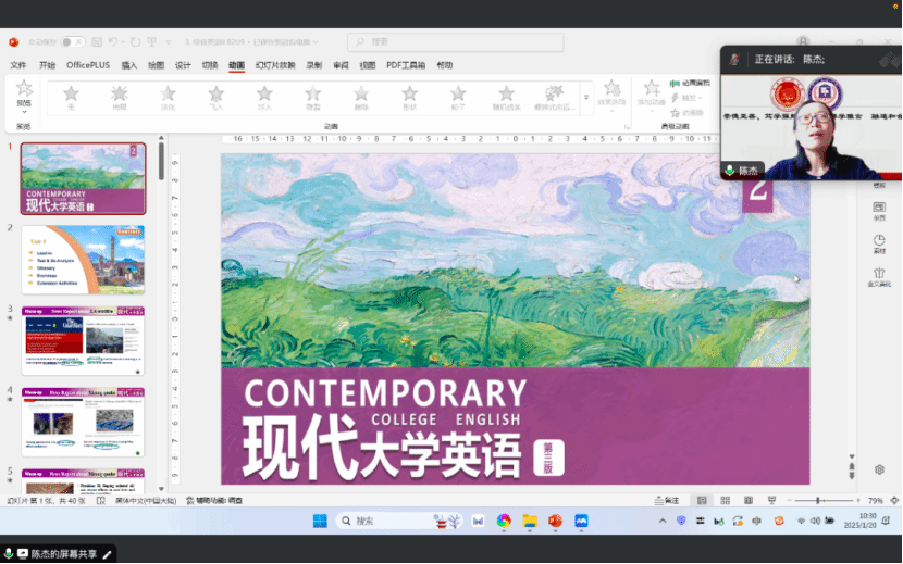 为积极迎接本科教育教学审核评估,进一步提升英语专业教学质量,英语专业于2025年1月20日组织了第一轮线上磨课活动,全体英语专业教师相聚云端,线上交流分享课程教学。